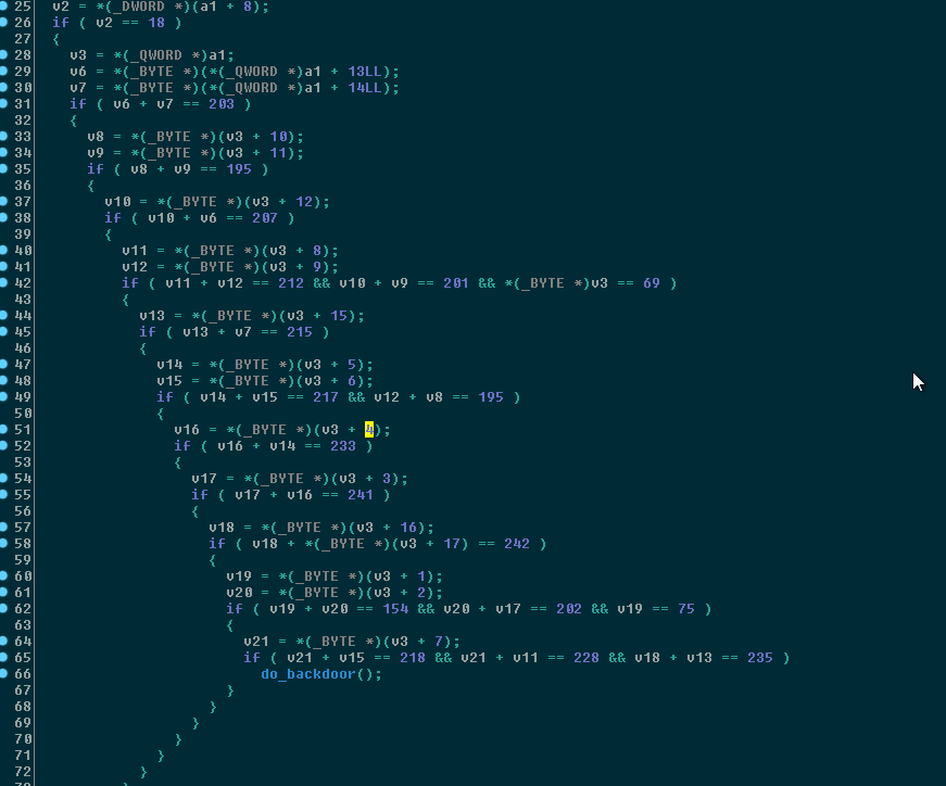 Regarding that decompilation seems that we can only select algorithm number from 2 to 15, regarding that the algorithm 9 is allowed and will jump to 0x90909090, but we can't control that addess.