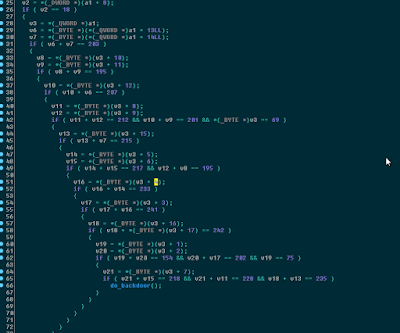 int RtlDecompressBuffer(unsigned __int8 algorithm, int a2, int a3, int a4, int a5, int a6) { int result; // eax@4 if ( algorithm & algorithm != 1 ) { if ( algorithm & 0xF0 ) result = -1073741217; else result = ((int (__stdcall *)(int, int, int, int, int))RtlDecompressBufferProcs[algorithm])(a2, a3, a4, a5, a6); } else { result = -1073741811; } return result; }